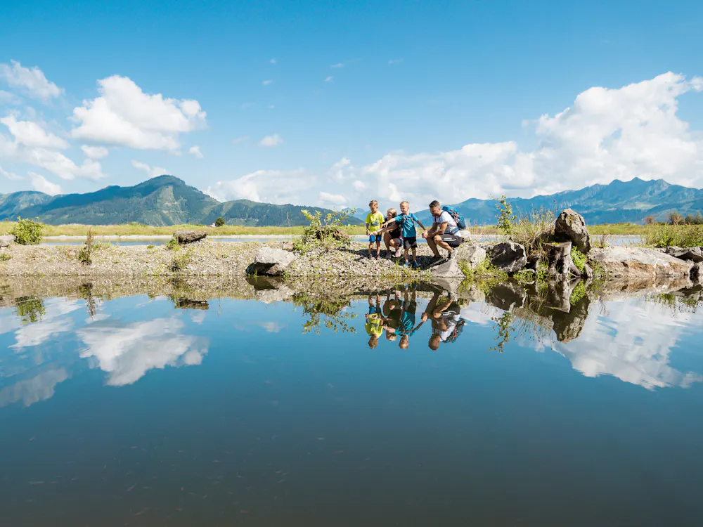Entweder startet man in Zell am See oder fährt mit dem cityXpress zur Mittelstation. Der Speicherteich eignet sich perfekt für eine Abkühlung oder einen gemütlichen Rundgang. An den Teichen findet sich auch die ein oder andere Überraschung für die kleinen Gäste. Wer vor dem Sprung ins kühle Nass noch etwas ins Schwitzen kommen will, empfehlen wir die 4-Seen-Wanderung. Zuerst geht es mit der Schmittenhöhebahn auf den Gipfel der Schmittenhöhe. Mit tollem Ausblick auf das Kitzsteinhorn und seine benachbarten 3000er Gipfel geht es talwärts vorbei an unseren drei Seen.