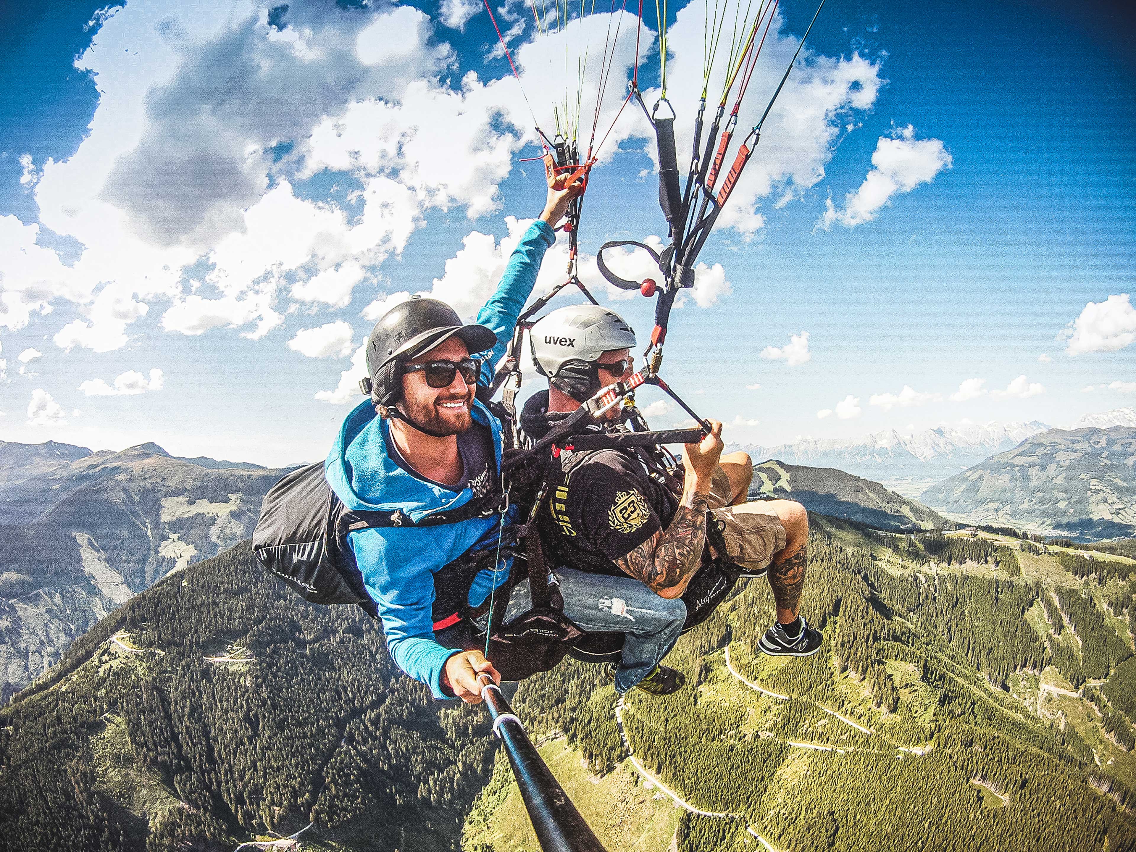 Ein Tandem Gleitschirmflug hoch über Zell am See-Kaprun ist etwas sehr Besonderes. Doch wie geht diese herrliche Sommeraktivität vonstatten? Tandem Paragleiten ist das Fliegen mit einem erfahrenen Piloten, während man an einem Tandem Gleitschirm hängt. Während des Tandemfluges kann man atemberaubende Ausblicke auf die umliegenden Berge, sowie den Zeller See genießen.